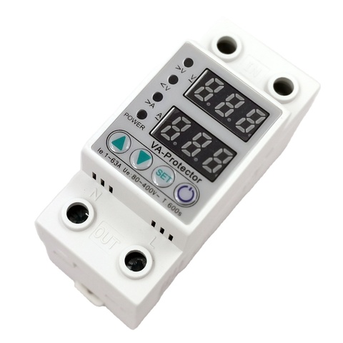 Dual Led Display 63a Instelbaar Voltage Monitoring Apparaat Beschermer 110V 120V 230V Koper Relais Voor Ac Overstroombeveiliging
