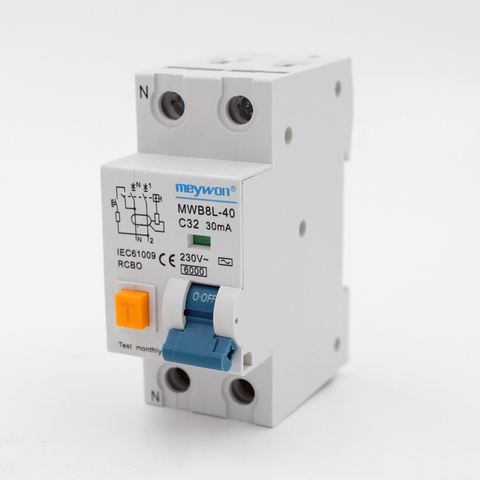 タイプ2P 25A残留電流遮断器 (MCB) 電子RCBO容量10mA 30mA 100mA 300mA 32A 40A銅材料